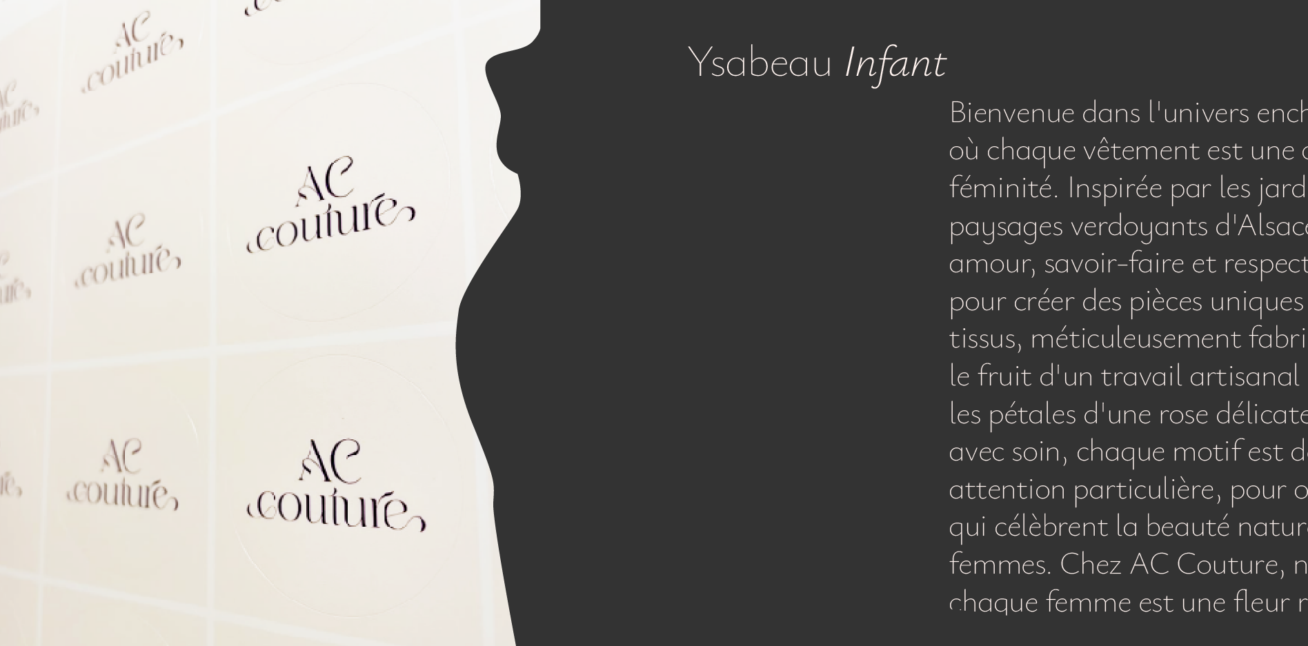 "Collection en hommage à ma grand-mère, elle-même couturière et amoureuse de son jardin fleuri.". Toutes les formes sont dans la nature et AC Couture habille toutes les formes aux couleurs du printemps. L'identité s'incarne à travers le tracé de courbes féminines. Une ode aux morphologies toutes singulières, petites, grandes, charnues ou élancées.