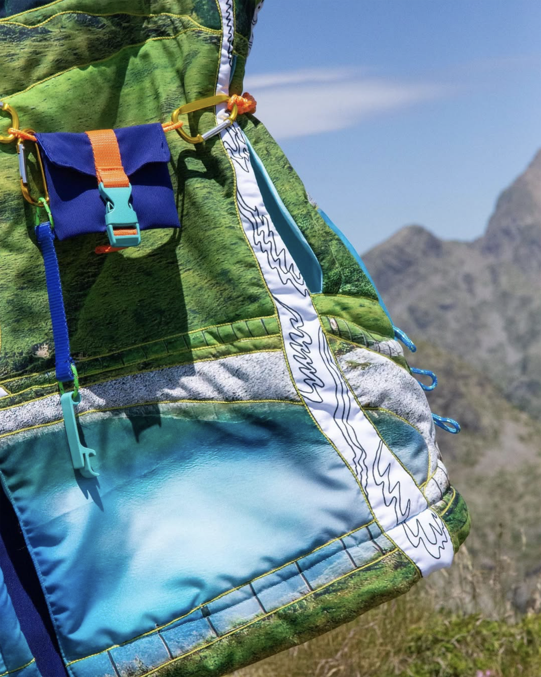 Shooting photo réalisé pour la collection Outdoor pour citadin en manque de verdure. Réalisées par Lola Rousselet, ces tenues tracent l’histoire d’une excursion en montagne. Plongez dans ces paysages majestueux, où la beauté brute de la nature rencontre des citadins en quête d'évasion.
